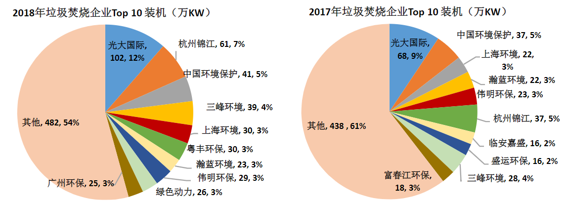 图3 垃圾焚烧top10企业装机量(资料来源:中国产业发展促进会生物质能产业分会)
