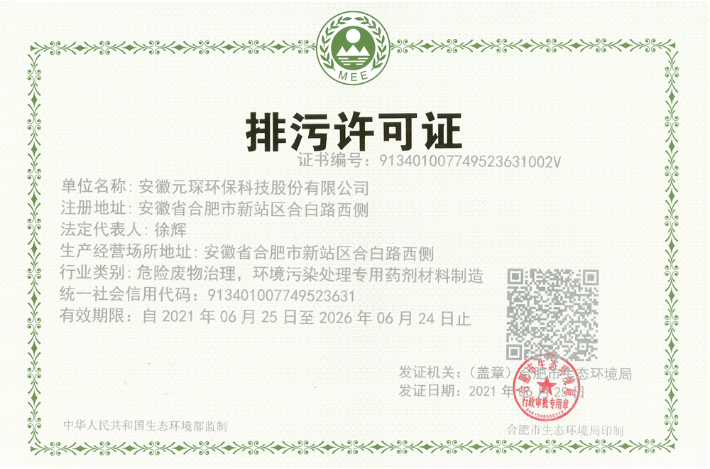 安徽乐鱼leyu环保科技股份有限公司排污许可证