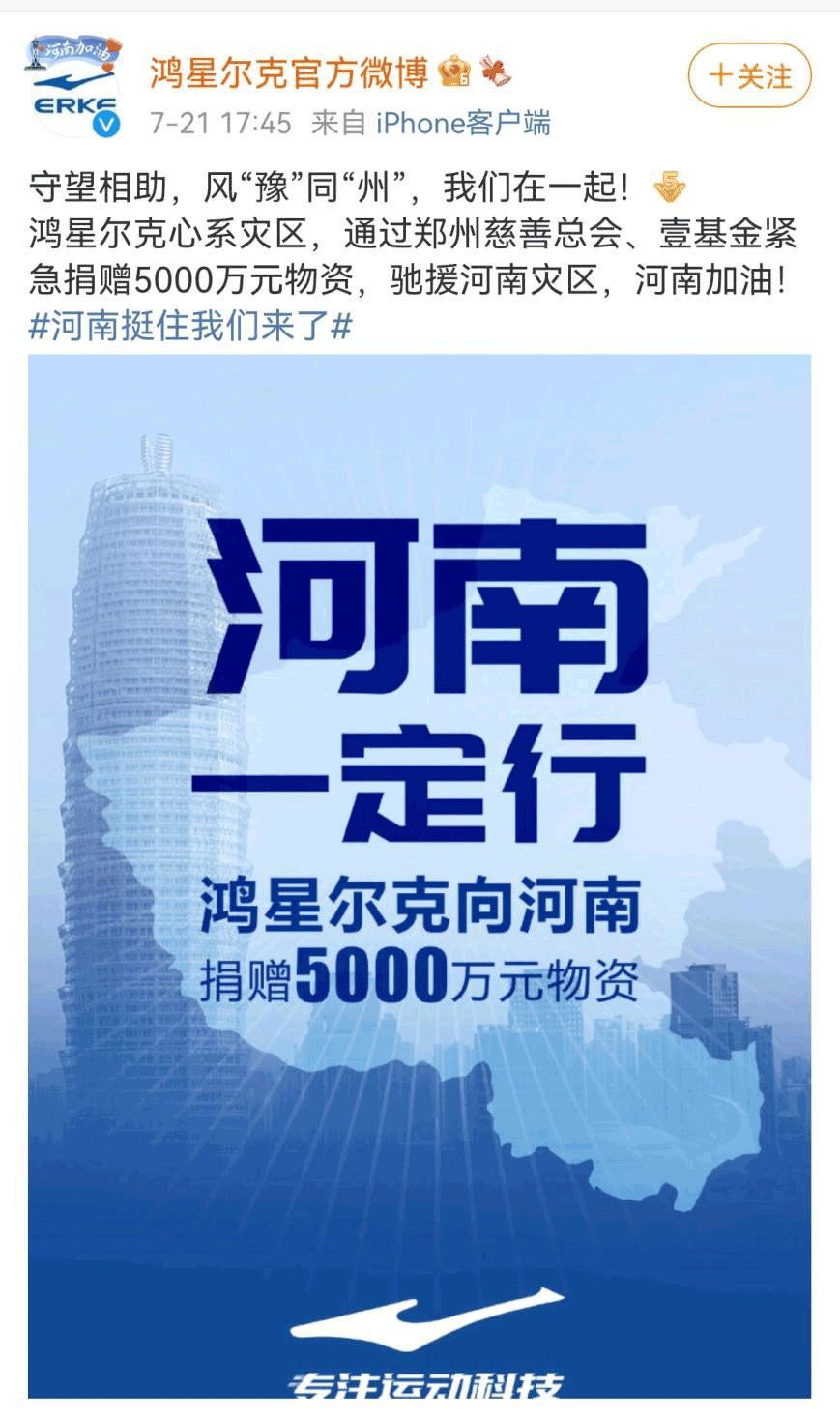 所以,一个大家以为快要消失的牌子却能在同胞有困难时捐掉5000w,看完以后乐鱼leyu科技元小琛也想说: 鸿星尔克,你的福气在后头!
