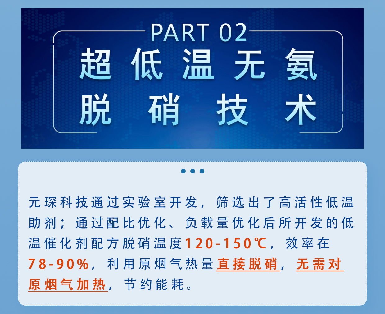 产品特点 催化剂具有优异的超低温脱硝性能,在140℃脱硝温度下效率可达90%以上,